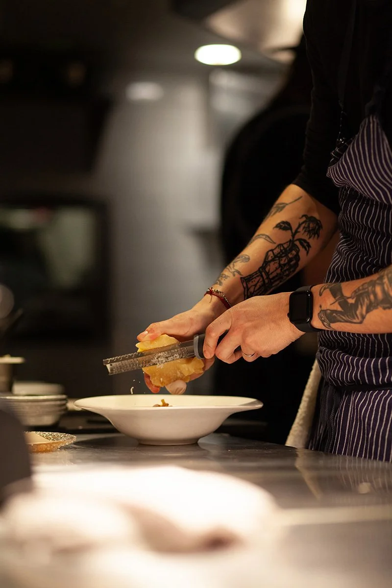 Jay has worked everywhere from corporate restaurants to independent fine dining to dive bars, absorbing everything each place and every person had to offer. He loves the fast pace of the kitchen, the camaraderie between chefs, and the knowledge that even on the most ordinary day, he's helping create an experience guests will remember. Much of Jay's culinary inspiration comes from Latin American cuisines, shaped by years of working alongside people from across South and Central America and sharing meals in the kitchen, whether over gorditas, pupusas, or baleadas. For Jay, those shared moments are where a lot of the best learning happens.